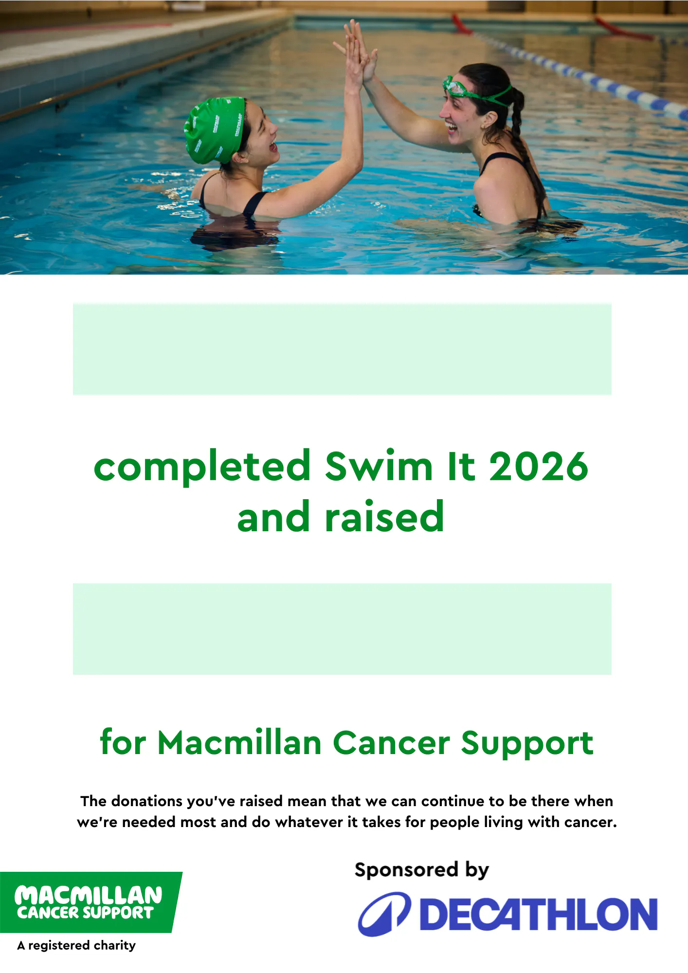 Save, personalise and share to celebrate your Swim It victory!
